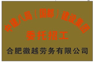 徽越公司自2008年中建總公司及多家世界500強企業授權招工資格以來,在同行業知名度信譽 度較高。徽越公司是安徽省一家經過合肥市工商行政管理局(安徽省工商行政管理局備案審核)、合肥市勞動和社會保障局及合肥市建設委員會(安徽省建設廳資質審批)審核批準成立的正規合法的且具有豐富建筑勞務輸出和項目施工管理經驗的信譽良好的勞務派遣和勞務分包...>>查看詳情